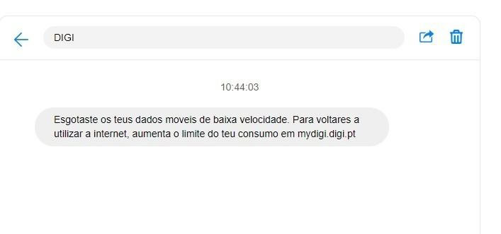Existe ainda um extra de 1 TB adicional identificado como MB_FUV. Quando este esgota, o serviço é bloqueado automaticamente e o cliente recebe um SMS a informar que ficou sem dados móveis.