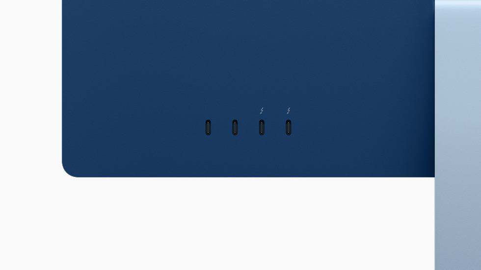 No campo da conectividade, o novo iMac conta com 4 portas USB-C, 2 das quais são portas Thunderbolt.