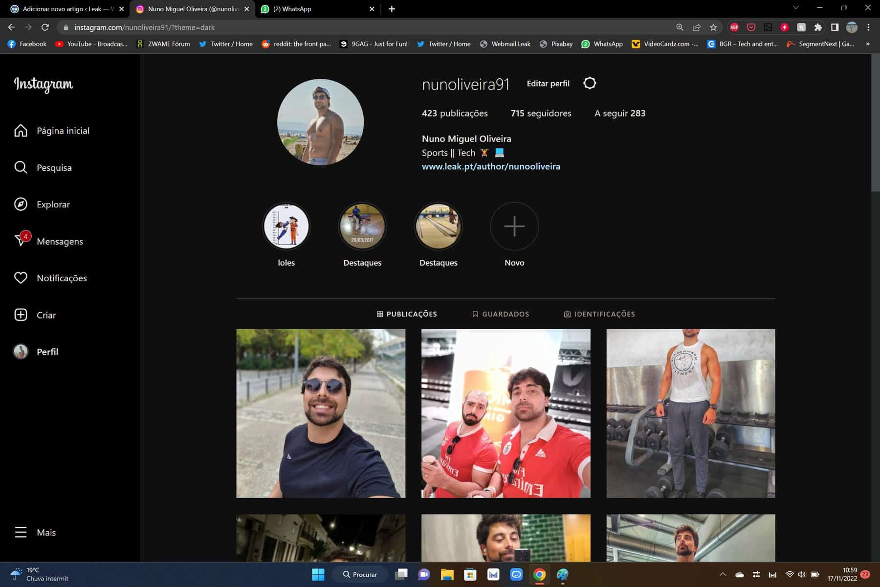 Não precisa de meter este pequeno excerto no link de todas as páginas! Assim que o fizer uma vez, a definição fica gravada, e tem sempre assim ao Dark Mode do Instagram versão para PC. (Se porventura não ficar gravada, recomendo que faça um marcador do link com o “?theme=dark”.)