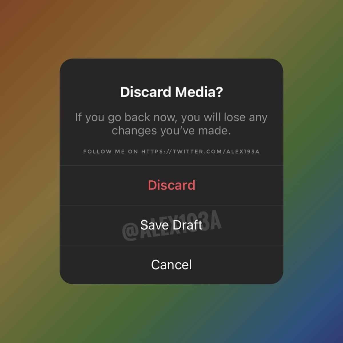 Esta novidade não parte de um leak mas sim de uma confirmação oficial por parte do responsável do Instagram, Adam Mosseri a uma revelação no Twitter. Na prática é tão simples como pode parecer. Quando estiver a construir uma história e quiser sair surge um botão que permite guardar um rascunho. Pode também cancelar. Se optar por guardar a história será guardada nos rascunhos, onde pode voltar a editar a qualquer momento e lançar. Nada mais fácil do que isto.
