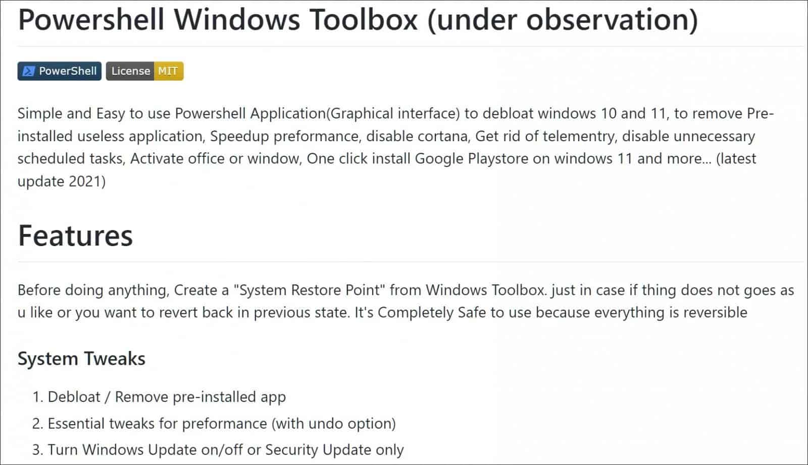 Nessa altura alguém lançou uma nova ferramenta chamada Windows Toolbox no GitHub com uma série de funções, incluindo a capacidade de tirar o lixo do Windows 11, ativar o Microsoft Office e o Windows e instalar a Google Play Store no Android.