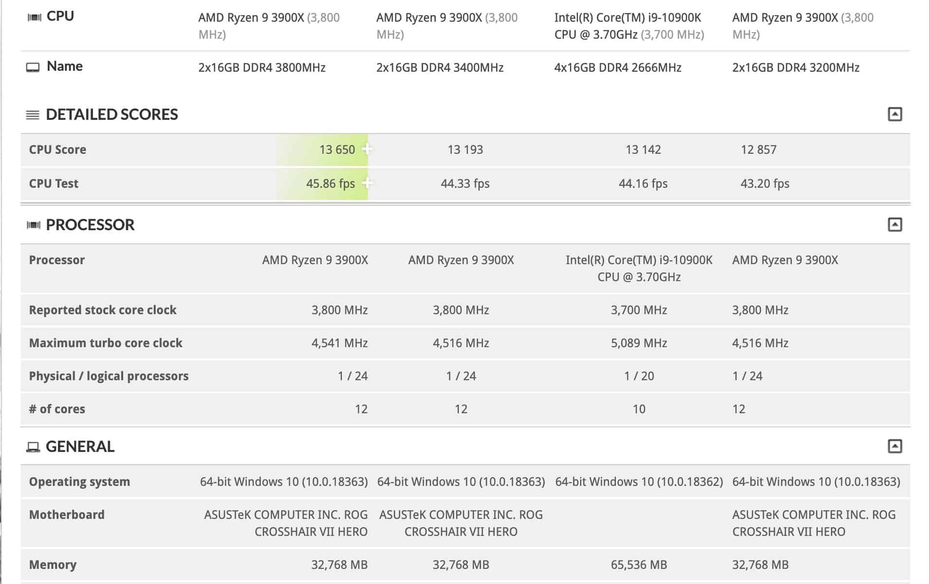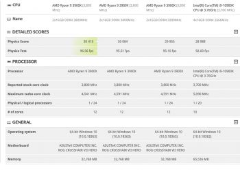 Portanto, de acordo com os resultados agora públicos, parece que o aumento de frequências e núcleos do novo processador não chegou para bater os ‘velhinhos’ Ryzen 3000. Isto mesmo tendo em conta que o 3DMark é um benchmark que gosta de frequências altas. (Para ter noção da diferença de frequências. O 10900K de 10 núcleos e 20 threads é capaz de chegar aos 5.1GHz. Enquanto o Ryzen 3900X apenas chega aos 4.6GHz.)