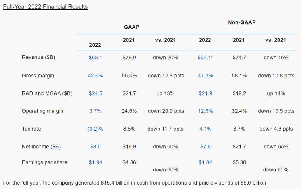 Foi hoje que ficámos a conhecer os resultados do último trimestre de 2022, e assim, os resultados totais do ano passado, dentro do mundo Intel. Um exercício que resultou num retorno de 0.365 dólares por ação, e que segundo a própria Intel, é prova de que foi feito um esforço tremendo, apesar das circunstâncias no lado da produção, e claro, no lado da procura.