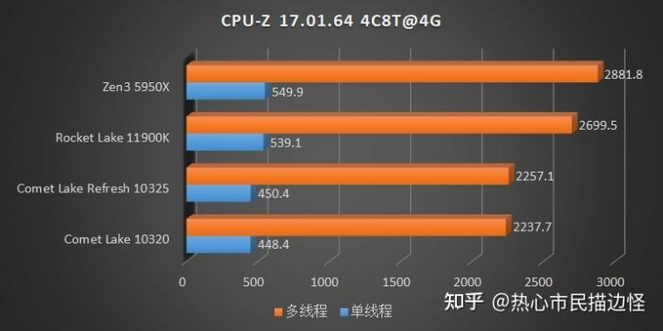 Portanto, segundo novos benchmarks, os novos Intel Core 11000 ‘Rocket Lake’ ficam aquém do IPC que a AMD é capaz de oferecer nos ainda muito recentes Ryzen 5000 ‘Zen 3’. Estamos a falar de testes que não comparam apenas a gama mais alta, mas sim a grande maioria dos chips que irão chegar agora ao mercado, incluindo alguns processadores Comet Lake Refresh como os i3-10325 e i3-10105. (Saiba mais aqui.)