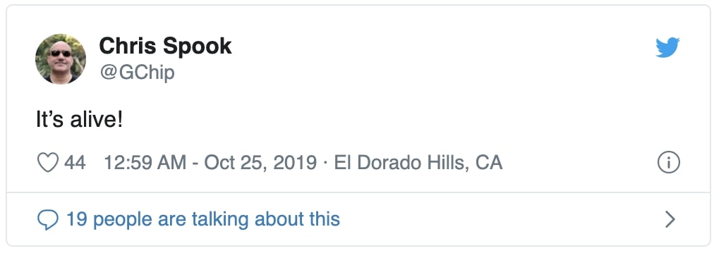 Então, Chris Spook, chefe de Marketing Gráfico da Intel, utilizou a sua conta oficial no Twitter para afirmar… “It’s alive!”. Falando claro está, das novas placas gráficas dedicadas da empresa, nomeadamente da primeira unidade de teste, denominada de Intel Xe DG1.