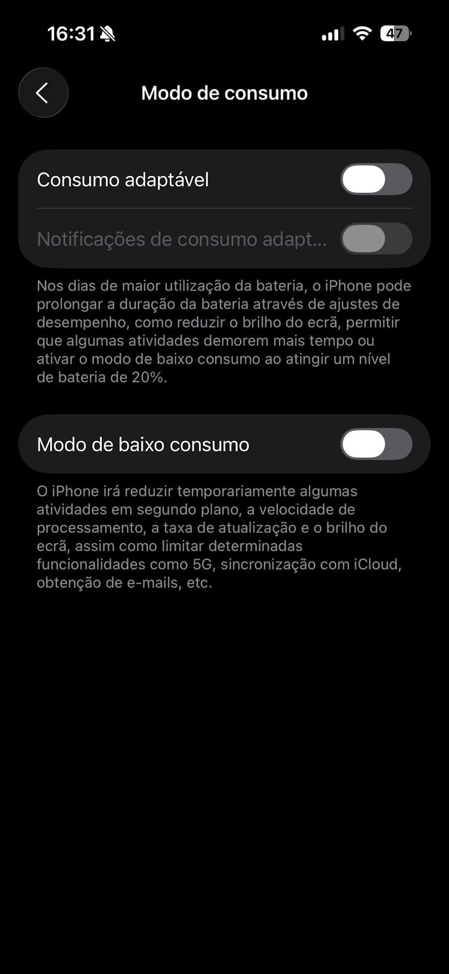 - Ativa o Consumo Adaptável, nas Definições de Bateria. O sistema ajusta a performance automaticamente para equilibrar consumo e fluidez.
