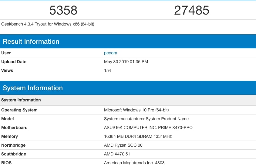 Como comparação, o Ryzen 7 1800X consegue 4400 pontos (single) e 24000 pontos (multi), enquanto o Intel Core i7-8700K consegue 5400 pontos (single) e 25000 pontos (multi). Já o Ryzen 5 2600 do ano passado, consegue obter 4700 pontos (single) e 23000 pontos (multi).