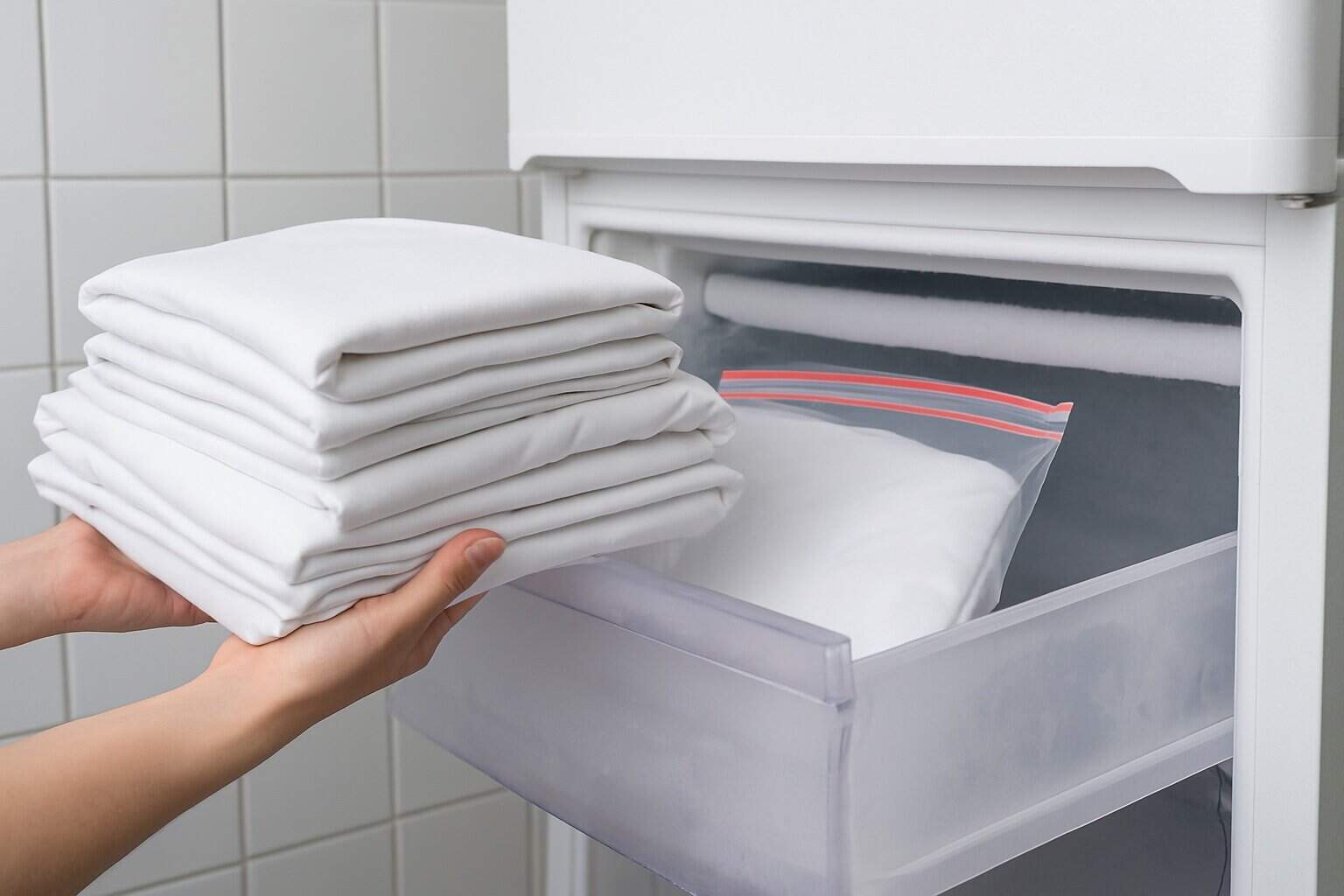 Coloque os lençóis e fronhas dentro de um saco de plástico bem fechado.