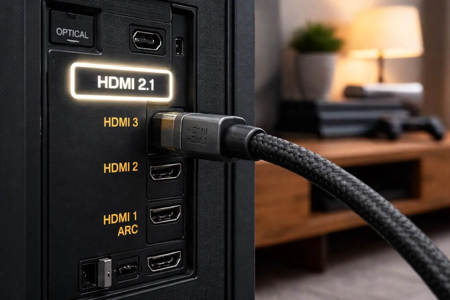 Consolas de última geração: A tua PlayStation 5 ou a tua Xbox Series X devem ocupar obrigatoriamente a cobiçada entrada 2.1. Esta é a única forma de garantires a jogabilidade ultra fluida e a resposta instantânea nos comandos.