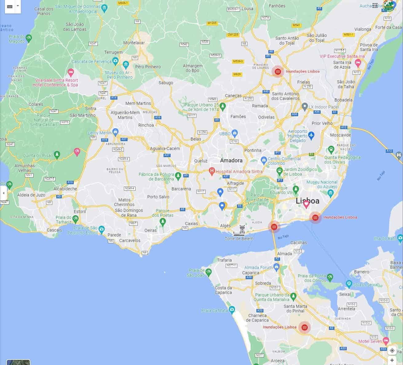 Veja os locais inundados em Lisboa no Google Maps