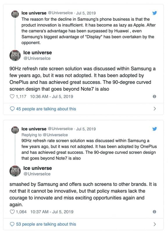 O ‘leaker’ afirma que este design “Full-Screen v2.0” iria reduzir ainda mais as margens dos smartphones Galaxy. Contudo, logo de seguida dá para perceber a frustração de Ice Universe, pela desistência… Afinal de contas, este design poderia ajudar a revitalizar o departamento mobile da Samsung.