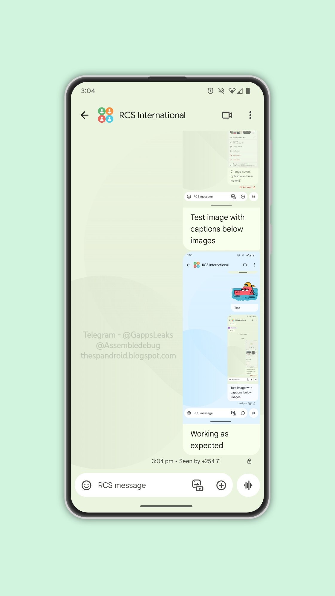Atualmente, a funcionalidade não funciona no Google Messages. O leakster conseguiu obter capturas de ecrã da funcionalidade ativando algumas flags na app de mensagens num dispositivo com root.