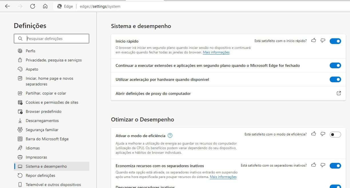 O problema é que a funcionalidade de arranque rápido está sempre ativa. Mesmo quando mudamos para outro browser. Assim estão sempre componentes a correr em segundo plano. Claro que isto é bom para quem utiliza o Edge diariamente. É que arranca com mais rapidez quando damos um clique no atalho que está na barra de tarefas. Agora quando não utilizamos este browser não temos interesse nenhum em ter esta função ativa!