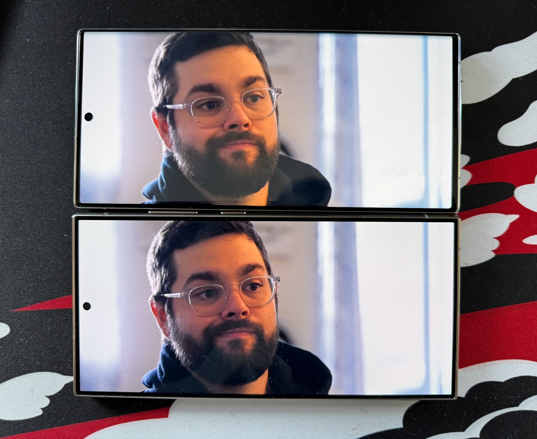Ou seja, o S23 Ultra continua a ser um smartphone incrível, apenas ligeiramente diferente do novo e melhorado S24 Ultra. Que diferenças saltam à vista? É muito simples. O ecrã deixou de ser curvo, e tem agora margens bastante mais reduzidas, especialmente na parte de baixo como pode ver em cima. Além disso, o acabamento em titânio parece ter elevado a qualidade de construção do S24 Ultra em alguns pontos.
