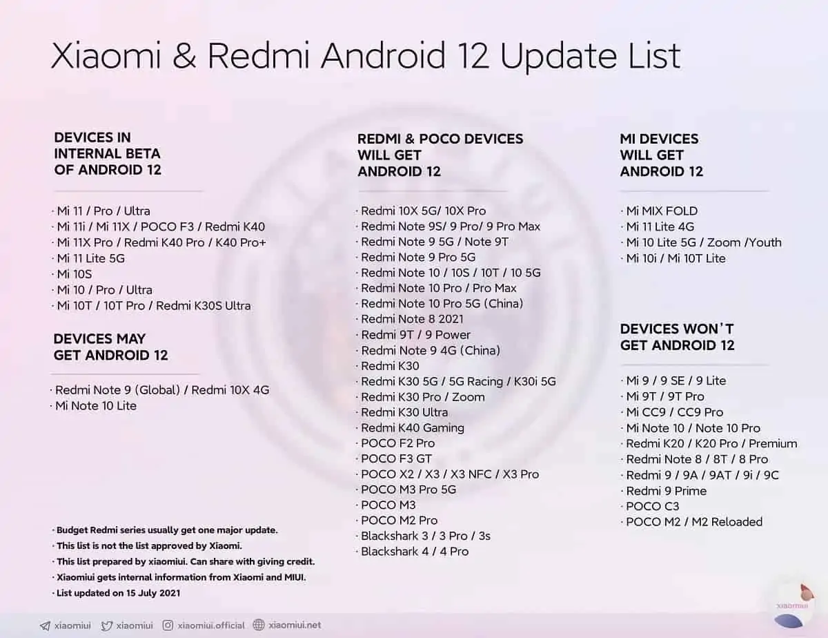 Entretanto há um pormenor. A lista anterior foi alertada e há algumas correções. O POCO C3, POCO M2 e POCO M2 Reloaded já não terão direito ao Android 12. MAs, por outro lado, o Redmi Note 9 4G, Redmi 9T e Redmi 9 Power terão mesmo direito.