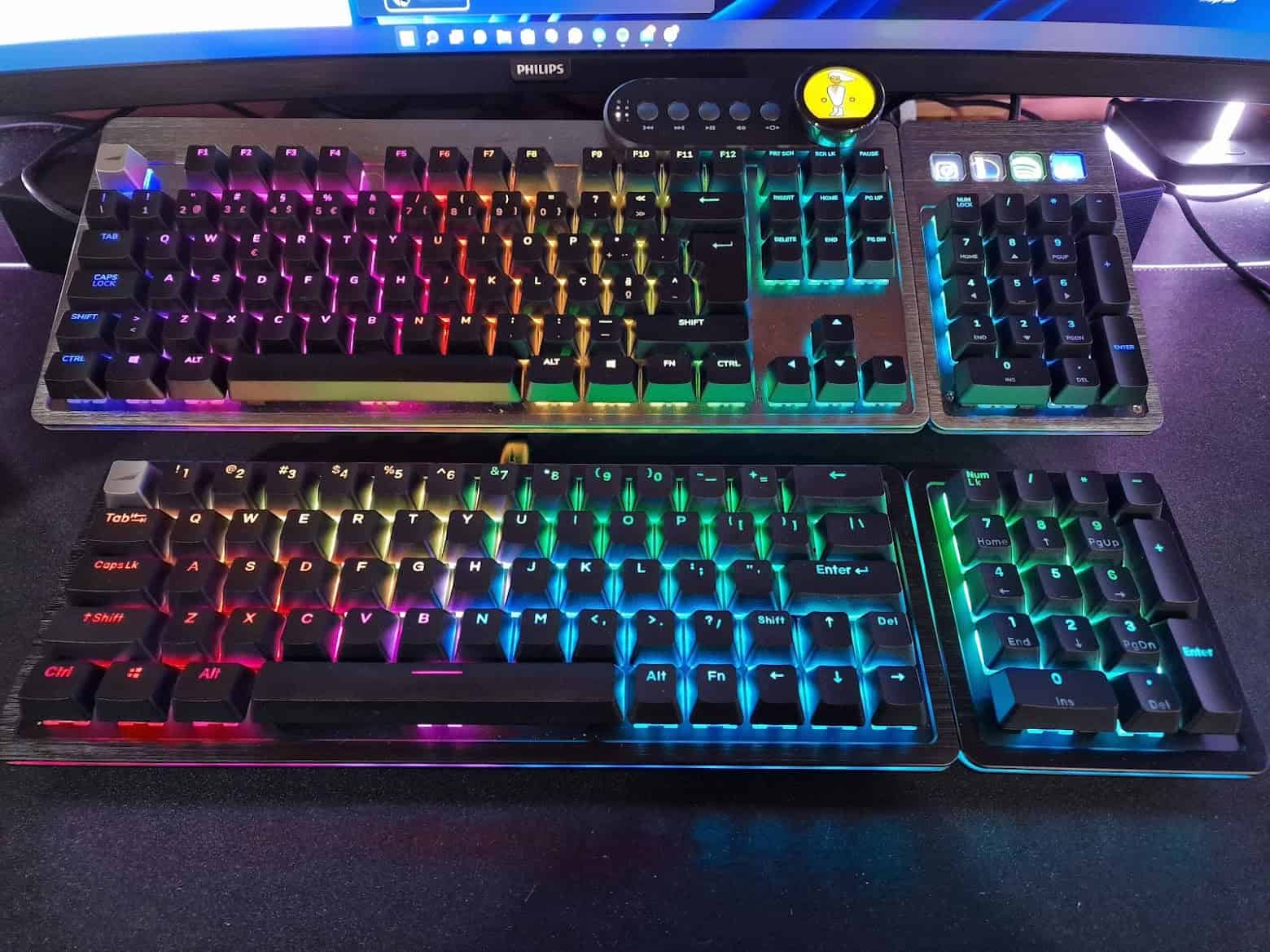 Além disto temos a possibilidade de trocar switches mecânicos com o teclado ligado, e claro, a possibilidade de acrescentar peças, como é o caso do teclado numérico.