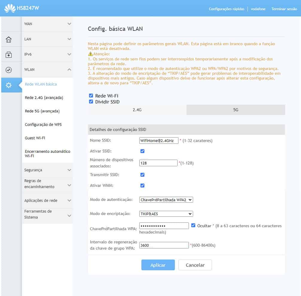 Uma vez feito o login, as instruções exatas para alterar a palavra-passe Wi-Fi dependerão do modelo de router. Geralmente, deve procurar uma secção como Wireless ou WLAN. Aí estará a opção de alterar a password, entre outras funcionalidades.