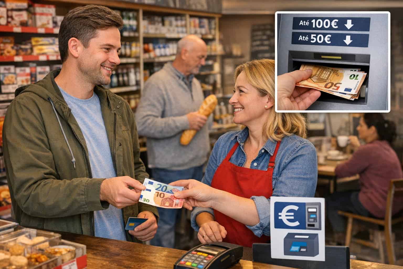 A grande novidade é a desvinculação da compra. Está a ser implementado um sistema que permite levantar dinheiro em estabelecimentos comerciais aderentes sem a obrigatoriedade de fazeres uma despesa.