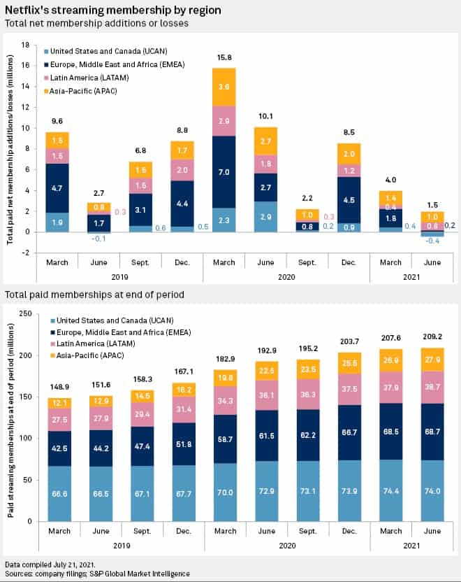 As coisas estão a mudar num cenário que ainda não é de pós-pandemia mas é mais um misto entre liberdade e um bicho papão que continua à solta e que tem de ser levado muito a sério. No entanto, o COVID-19 já não consegue manter as pessoas totalmente fechadas em casa. Assim, o que acontece é que os subscritores não estão a aumentar como antes. E isto é uma questão mundial. De facto, nos Estados Unidos e Canadá a Netflix está a assistir a uma perda considerável de subscritores. Na Europa, Médio Oriente e África o ritmo de crescimento abrandou muito. Ao nível da China e outros países da Ásia o número de subscritores aumentou, mas aqui é um caso especial. É que esses clientes geram menos lucro e a Netflix tem margens bastante mais baixas.