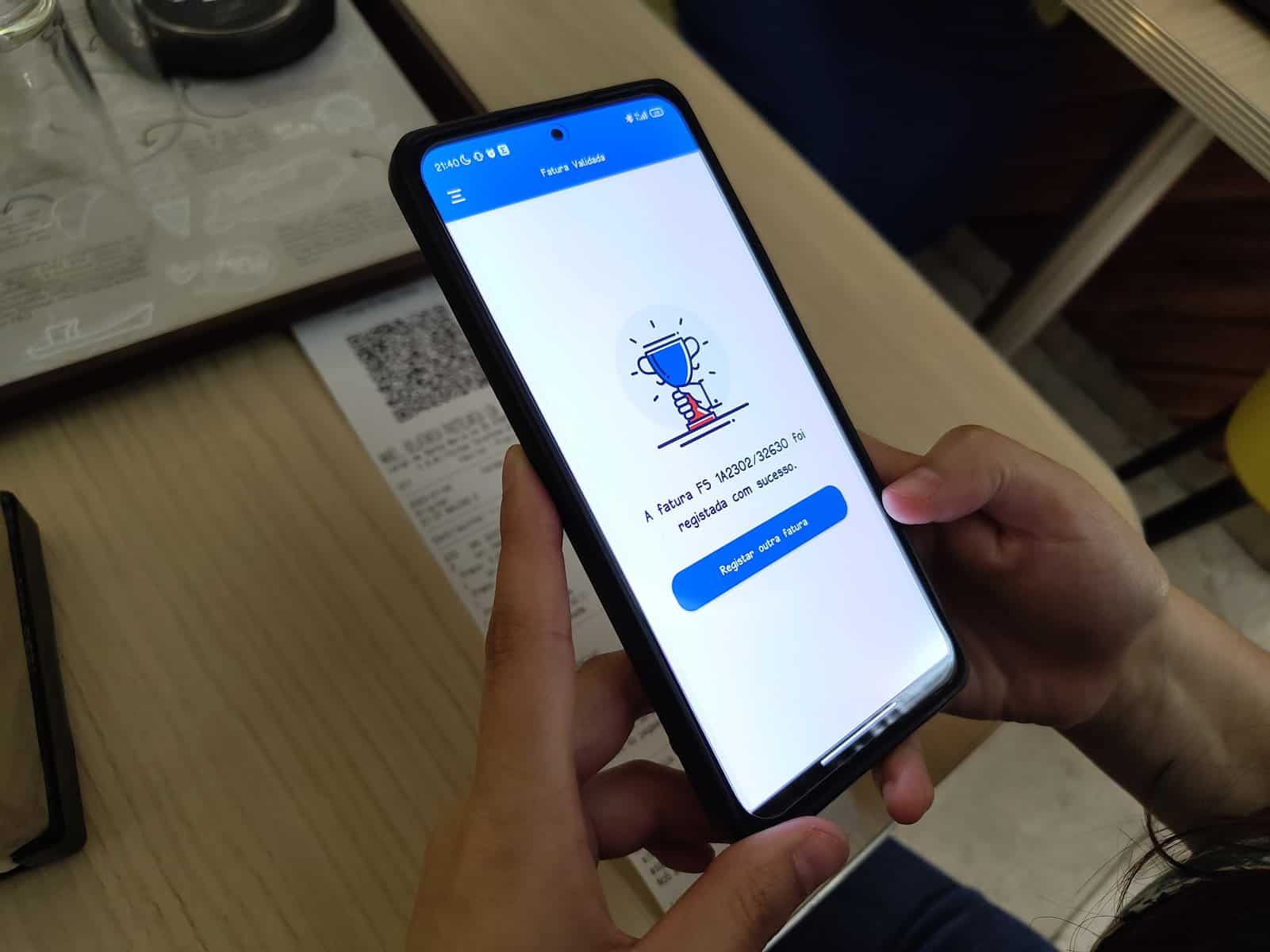 Depois desta primeira etapa, precisa de carregar no botão azul “Registar” no canto inferior direito do ecrã. Aqui vai ser possível abrir a funcionalidade de registo através de código QR. Depois do leitor aberto, apenas precisa de apanhar o código QR apresentado em qualquer fatura, para ir para ao painel na imagem em baixo.