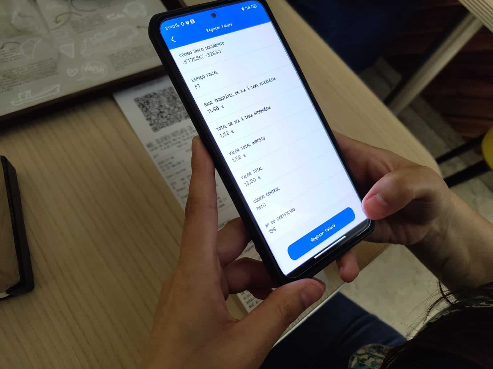 Entretanto, depois da leitura do Código QR, a app vai apresentar toda a informação da fatura, e no final, um outro botão “Registar Fatura“. Basta carregar aí.