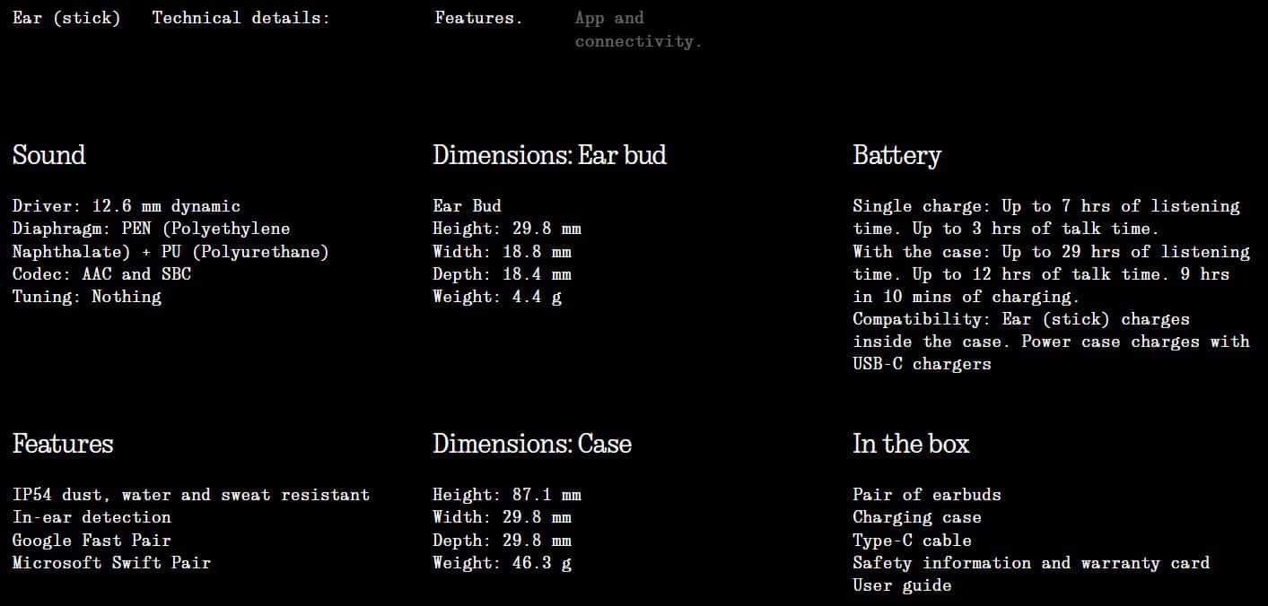 Portanto, segundo a Nothing, os Ear (Stick) oferecem a melhor e mais avançada experiência de áudio da marca. Estamos a falar de earbuds com uma driver personalizada de 12.6mm, um design half-in ear (mais confortável para quem odeia enfiar os buds nos ouvidos), e claro, 29 horas de autonomia.