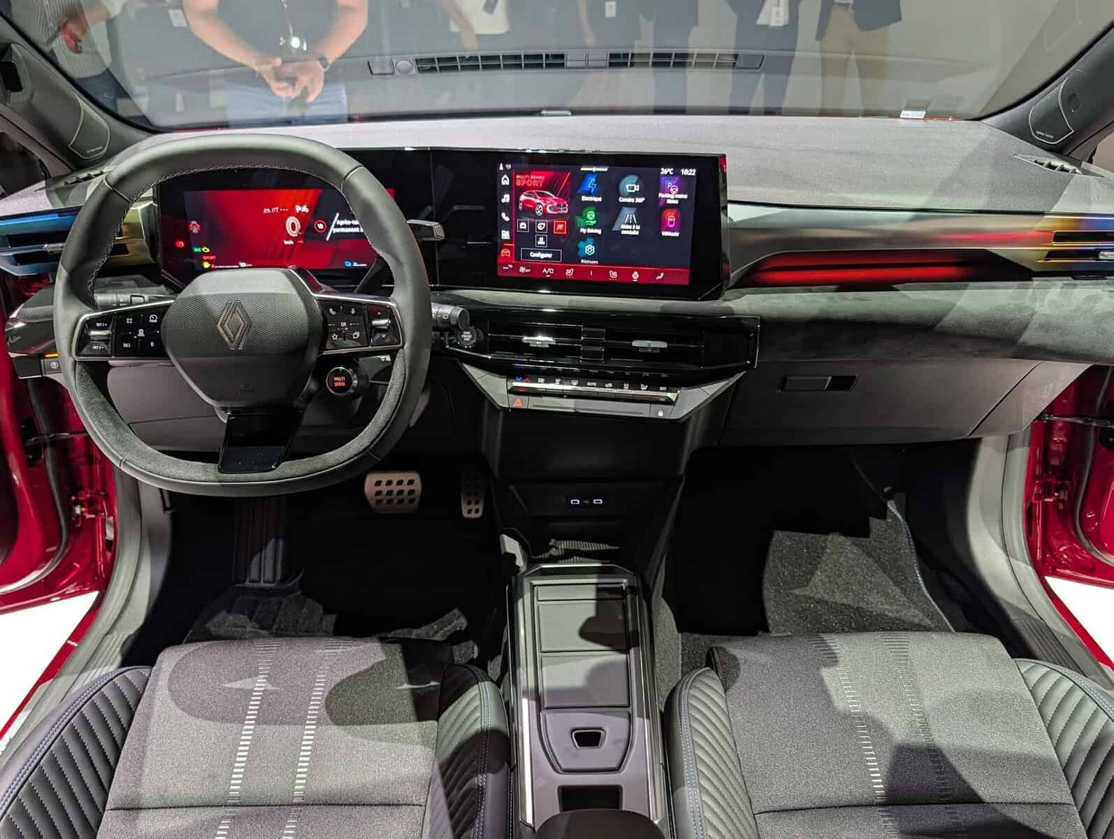 O habitáculo sobe de patamar: novos materiais (têxteis e Alcântara no Esprit Alpine), iluminação ambiente com 48 cores e um duplo ecrã em “V” de 10,1” (depende do nível) virado ao condutor.
