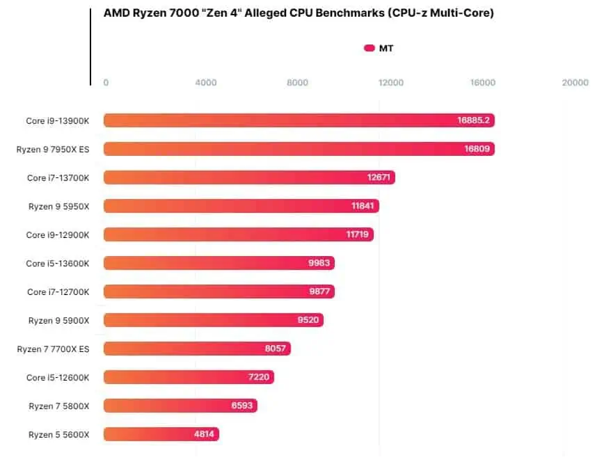 Contudo, segundo os mais recentes leaks de performance, o i9-13900K da Intel, que por sua vez aposta num aumento agressivo no número de núcleos físicos, e também no aumento de frequências, deverá ficar 0.5% à frente da melhor oferta da AMD.