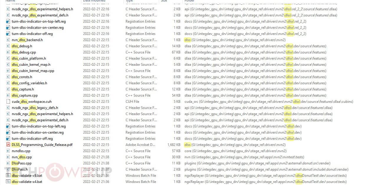 Na lista podemos encontrar vários ficheiros C++, bat, ativos, etc… Que na verdade, parecem mesmo ser a base que dá vida ao DLSS. Curiosamente, até podemos encontrar um ‘Guia de Programação’, que aparentemente serve para ajudar os estúdios na implementação da tecnologia nos seus jogos.