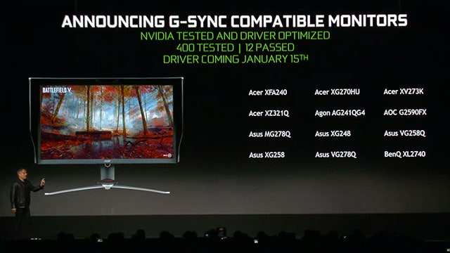 Pois bem, no seu evento na CES 2019, a empresa já ofereceu uma lista dos monitores que já foram testados. E que cumprem os requisitos. Com vários aparelhos da Acer, ASUS, AOC, Agon e BenQ já na fila, para serem automaticamente adicionados à próxima atualização no dia 15 de Janeiro de 2019.