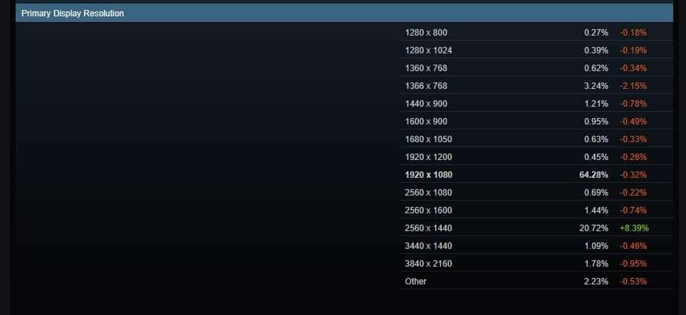 Portanto, segundo o mais recente relatório de hardware da Steam, o mundo dos computadores está mesmo a evoluir da qualidade de imagem. Ao fim e ao cabo, apesar do facto do Full HD (1080) ainda reinar, a verdade é que o QHD (1440p) começa a ganhar mais força, todos os meses.