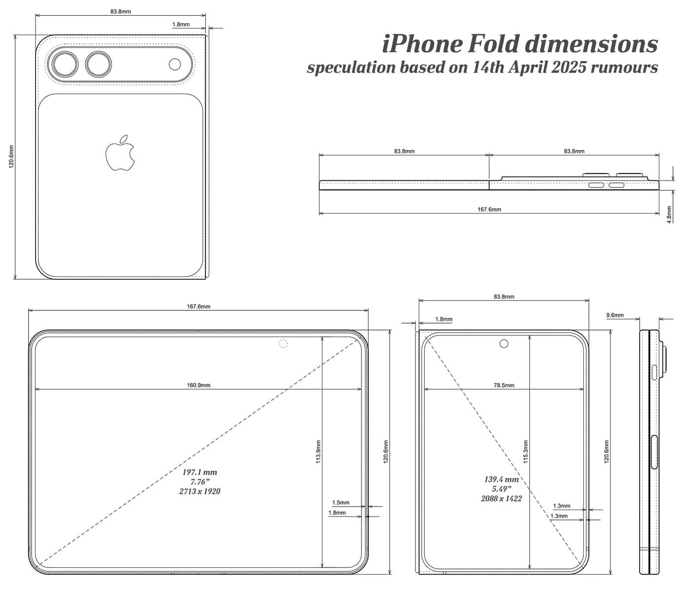 Portanto, segundo as últimas informações, o ecrã exterior do iPhone Fold deverá contar com 5.5 polegadas, o que o colocaria muito perto do tamanho do saudoso iPhone 13 mini. Já aberto, o ecrã interior deverá ultrapassar as 7.8 polegadas, o que o torna praticamente um mini iPad em formato de bolso.