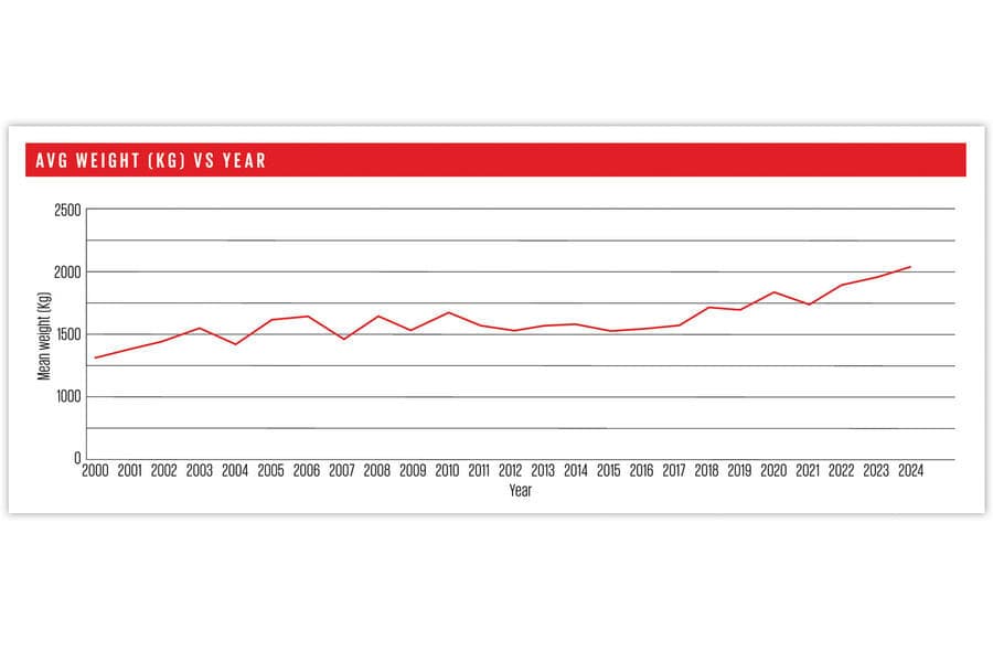 Estamos a falar de 400kg de aumento de peso em médio, isto apenas entre 2016 e 2023, praticamente a chegada de uma nova geração.