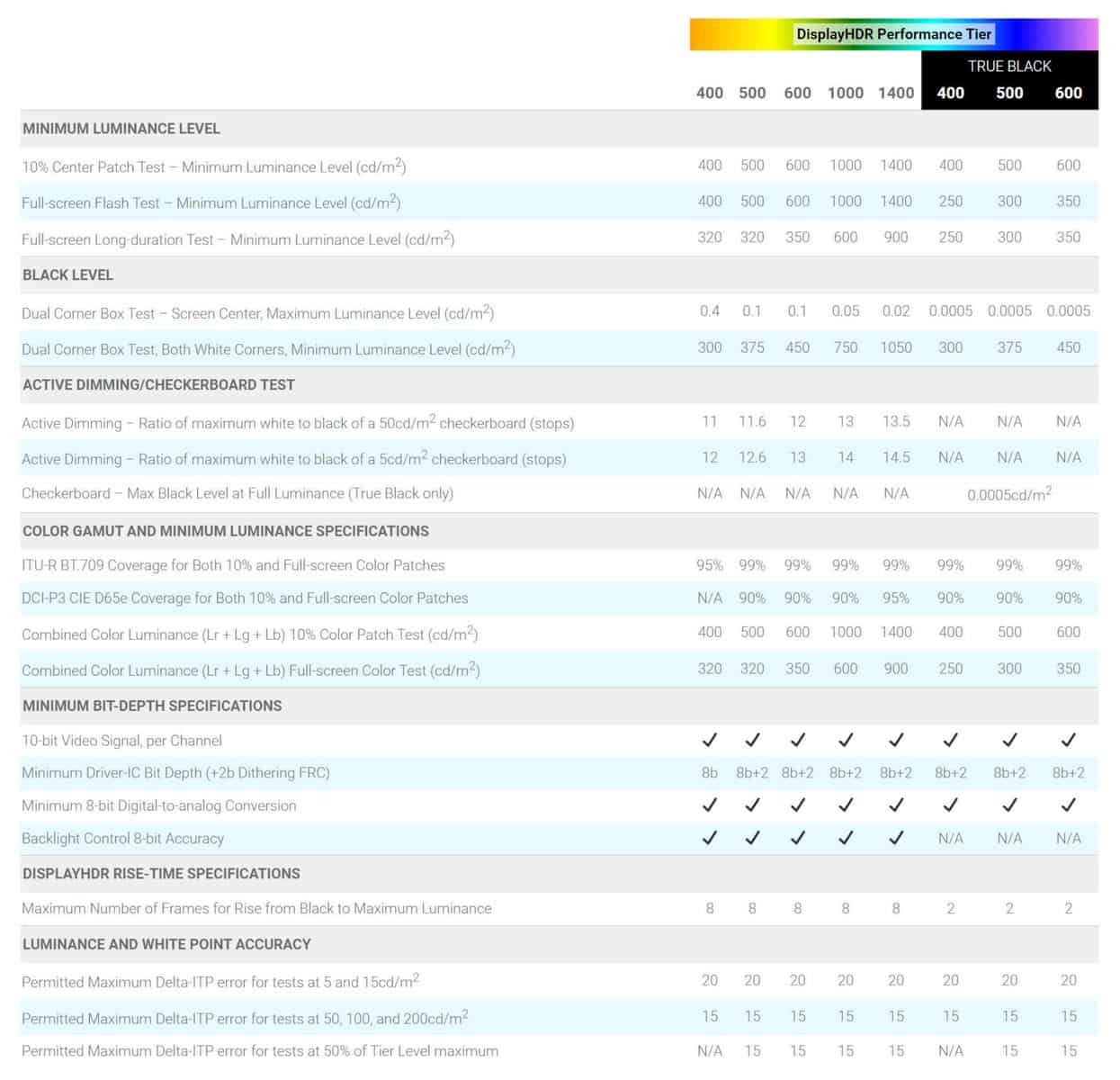 Assim, enquanto o HDR10, HDR10+, etc… São especificações para formatos de vídeo, o DisplayHDR é uma certificação que tenta demonstrar o potencial que o ecrã tem para oferecer um bom HDR. Dito isto, DisplayHDR 400 é o valor mais baixo que pode ter, significando que o produto não é nada de especial no HDR. (Ainda assim, vai ser superior a qualquer outro produto SDR).