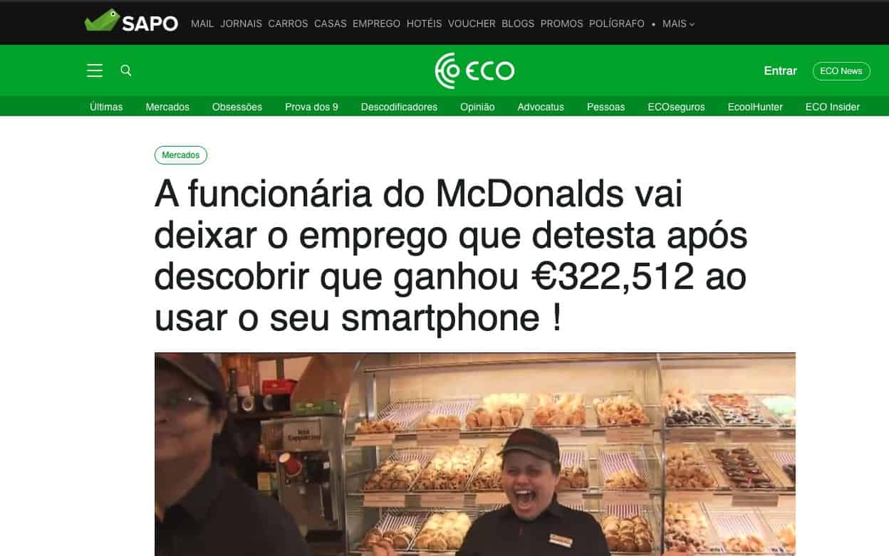 Não nos cabe analisar se é um sistema que funciona, ou não e como tal não vou tecer grandes comentários acerca disso. Este alerta serve apenas para as pessoas tomarem as suas próprias decisões, sabendo que nem o SAPO nem o jornal ECO estão relacionados com este assunto. A publicidade foi criada por uma página que não pertence ao SAPO e aponta para uma suposta página do jornal ECO mas que não o é.