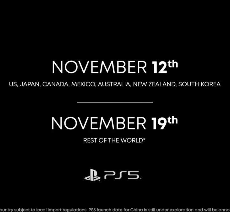 Afinal de contas, é finalmente oficial, a PlayStation 5 vai sair primeiro nos Estados Unidos, Japão, México, Austrália, Nova Zelândia e Coreia do Sul (dia 12 de Novembro), chegando posteriormente à Europa e restantes regiões no dia 19 do mesmo mês.