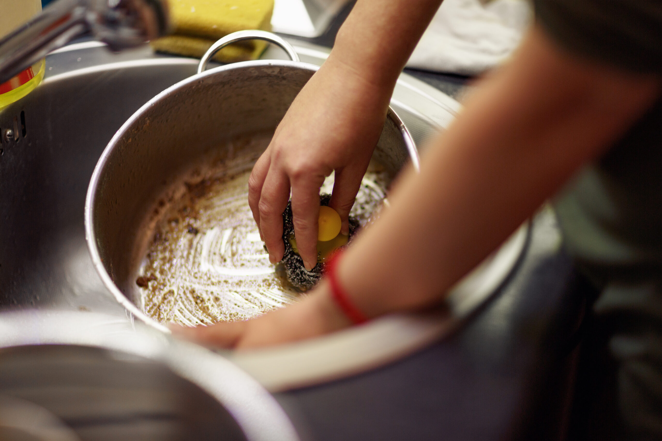 Manchas difíceis nas suas panelas e frigideiras? Uma bola de folha de alumínio pode transformar-se num esfregão para esfregar a gordura endurecida e as partículas de comida agarradas. Basta esmigalhar a folha numa bola grossa e aplicar detergente da loiça diretamente antes de atacar a superfície suja. Este truque é ótimo para ferro fundido ou metal não revestido, mas não para panelas antiaderentes ou esmaltadas, uma vez que pode riscar o revestimento.