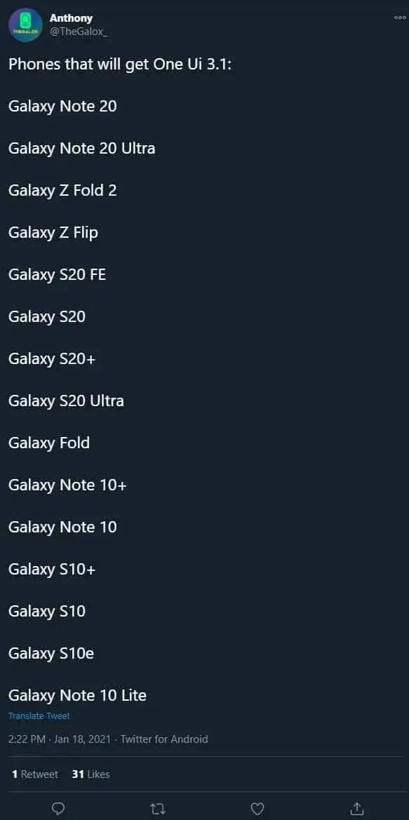 A última versão da interface da Samsung, o One UI 3.1, já está disponível nos últimos modelos Samsung Galaxy S21. Entretanto é óbvio que também vai chegar a outros dispositivos. Se está curioso para saber quem terá direito então saiba que a lista já foi publicada na Internet. Na prática inclui 15 modelos e todos eles são topos-de-gama. Novos e antigos.