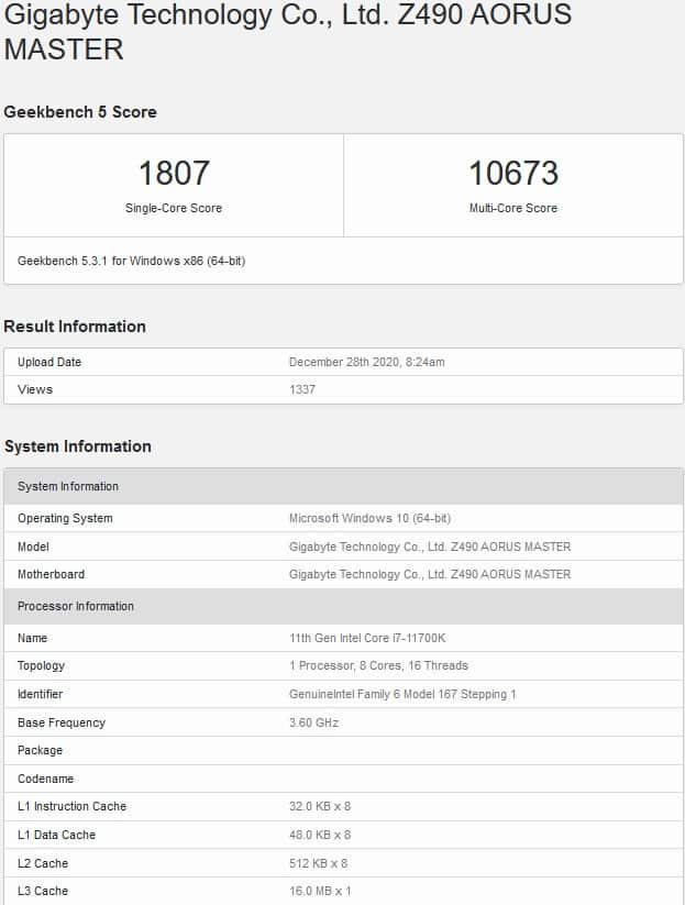 Portanto, de acordo com um novo leak de um benchmark (GeekBench 5), ficámos agora a saber que o Intel Core i7-11700K com 8 núcleos e 16 threads consegue mesmo ultrapassar o topo de gama da AMD no teste single-core, ou seja, consegue ultrapassar o Ryzen 9 5950X com 16 núcleos e 32 threads.