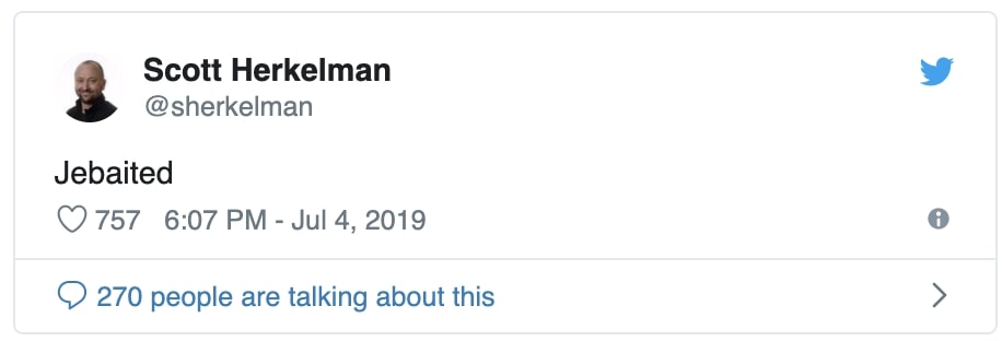 Este termo ‘Jebaited’ é muitas vezes usado no mundo dos jogos e Streaming, para definir o termo ‘Baited’. Que caso não saiba, significa tentar que o outro lado faça uma acção, ou reaja de uma maneira esperada.