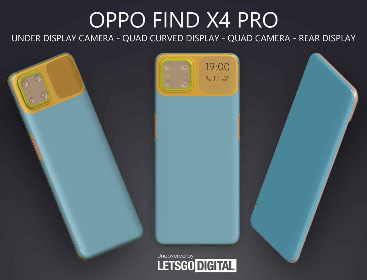A patente que foi submetida contém 48 imagens, das quais 18 são mostradas a cores e isto deu origem a várias renderizações. As imagens renderizadas mostram um smartphone Oppo muito elegante com um design de ecrã completo. O ecrã é arredondado nos quatro lados. Entretanto não há qualquer recorte para a câmara destinada às selfies. Ou seja, está escondida no ecrã. Em 2019, a empresa já demonstrou um smartphone com esta tecnologia. Em agosto deste ano, chegou a terceira geração num ecrã de 400 ppi – por isso dificilmente se vê a câmara.