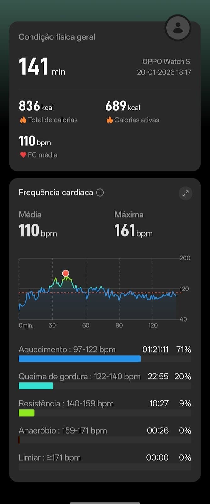 Dito isto, durante corridas, o relógio dá orientação em tempo real sobre ritmo e frequência cardíaca. Existe um modo de corrida profissional que analisa postura, VO2 máximo e limiar de lactato, além de um modo específico para queima de gordura, mantendo o utilizador na zona ideal de batimentos.