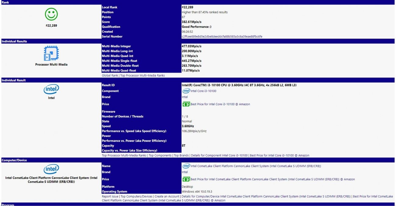 Afinal de contas, nas últimas horas apareceu uma entrada Comet lake na base de dados SiSoft Sandra bastante interessante! Com um produto denominado de Intel Core i3-10100, contando com 4 núcleos e 8 threads. (3.6GHz)