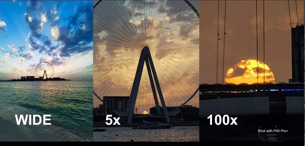 Segundo a Huawei, é aqui que está a grande diferença! Conseguindo significativamente mais na luz nos sensores (até 5x mais), bem como uma melhoria de 178% no percurso óptico do sistema. Para além dos 10x de zoom ótico, temos ainda a possibilidade de chegar aos Zoom de 100X.