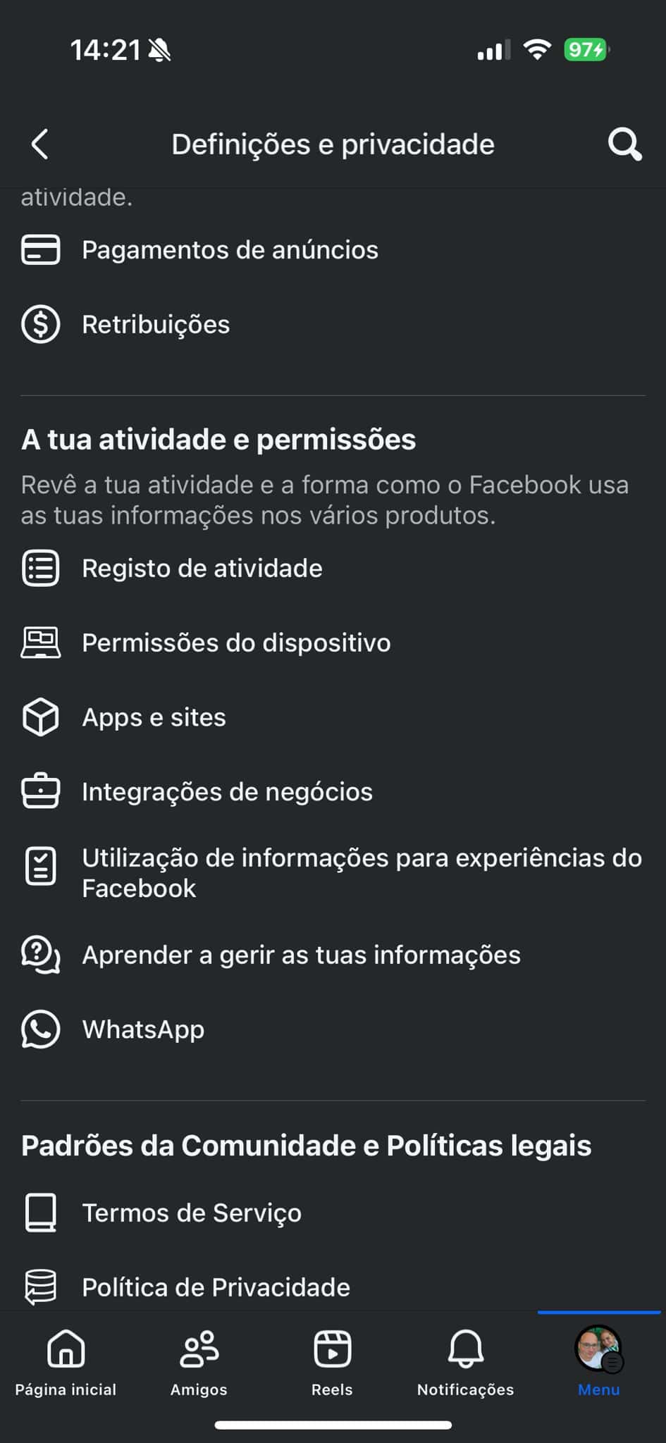 O Instagram, por estar ligado ao ecossistema do Facebook (Meta), funciona de forma semelhante. Nas definições da app podes controlar que permissões cada funcionalidade tem. Também aqui o ideal é desativar o acesso contínuo à localização e ao microfone, ativando apenas quando fores efetivamente utilizá-los.
