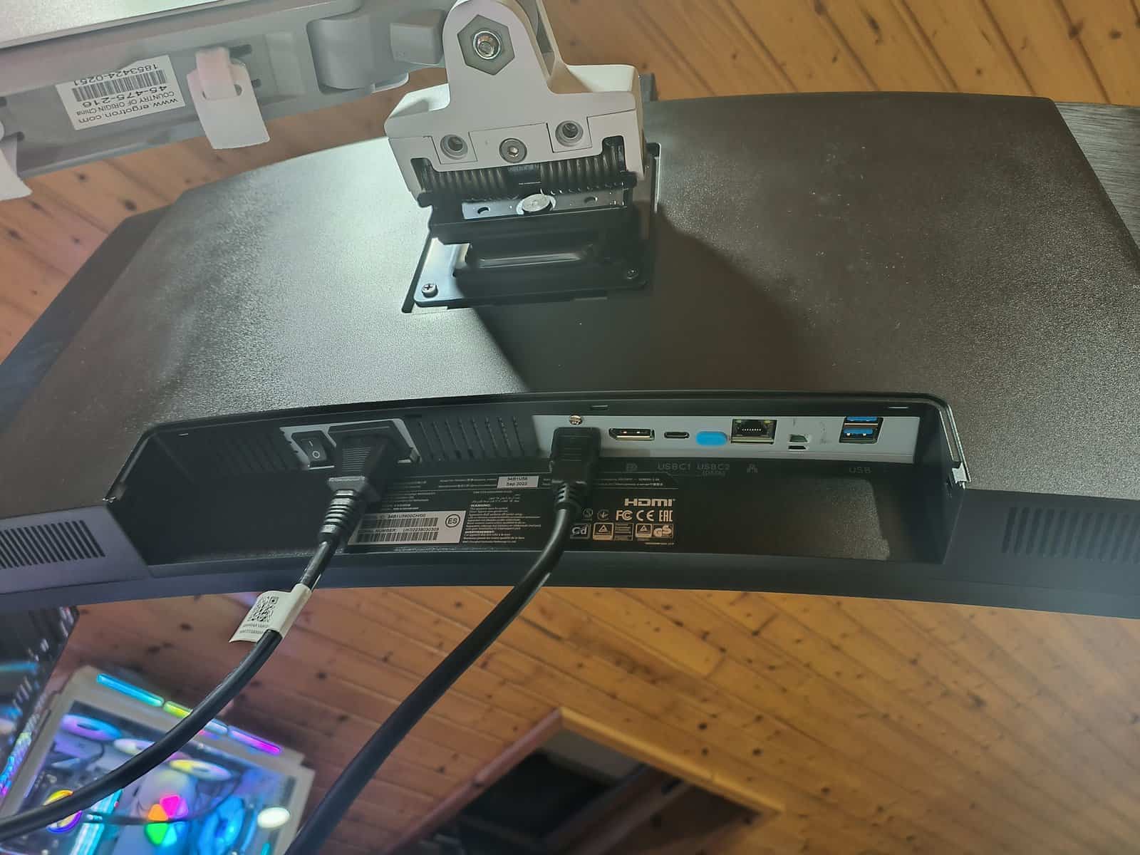 Infelizmente, a base incluída não permite rodar o monitor de forma vertical, mas podemos facilmente montá-lo num suporte VESA para ser possível fazermos aquilo que bem entendermos.