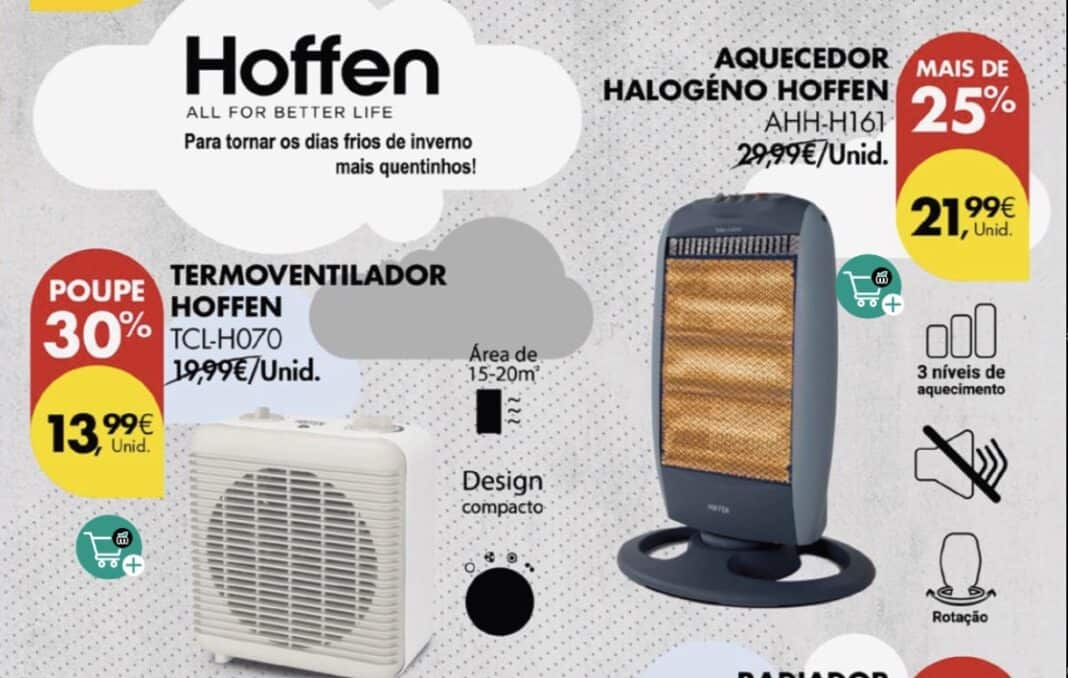 Aquecedor de Halogénio Hoffenn Pingo Doce – 22,99 Euros (1200W)