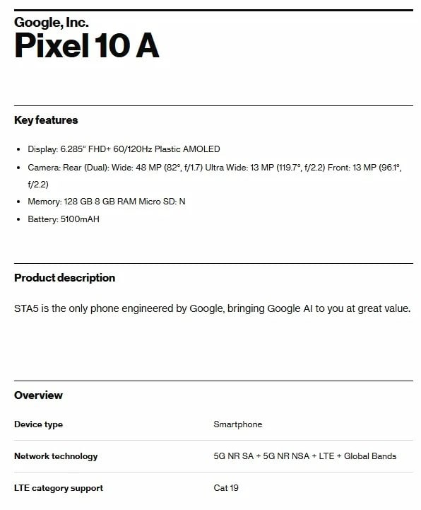 O conhecido leaker Evan Blass partilhou na rede social X que o Pixel 10a acaba de ser certificado para utilização na rede da operadora Verizon. Como parte desse processo burocrático, várias especificações chave foram reveladas, e há detalhes interessantes (e outros preocupantes).