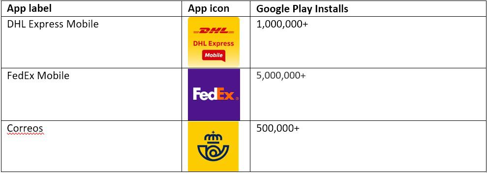 Para conseguir enganar as pessoas, o FluBot disfarça-se das apps FedEx, DHL, Correos e Chrome. Assim passa mais despercebida. Estes são alguns exemplos das apps falsas que andam a circular.