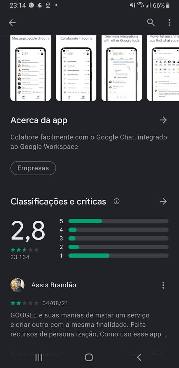 Estas críticas são tanto em português como em inglês. Entretanto o assunto é sempre o mesmo. A morte do Hangouts e a troca forçada pelo Google Chat.